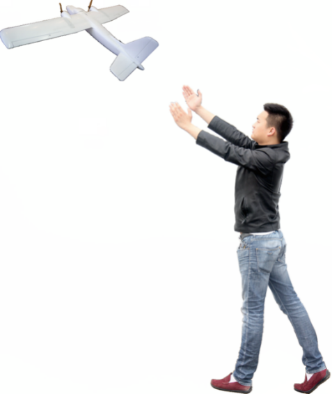 飛行計(jì)劃上傳到無(wú)人機(jī)內(nèi),自動(dòng)起飛模式下,操作者只需要將飛機(jī)拋入空中即可,完全不需要發(fā)射架、彈力繩者其他任何輔助裝置。操作就是如此簡(jiǎn)單、輕松。